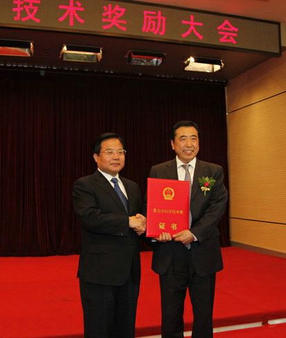 5月9日,青岛市委、市政府在中国海洋大学隆重召开全市科学技术奖励大会,国家橡胶与轮胎工程技术研究中心常务副主任、fb体育董事长袁仲雪荣获青岛市2013年度科学技术最高奖,青岛市委副书记、市长张新起为袁仲雪颁奖。