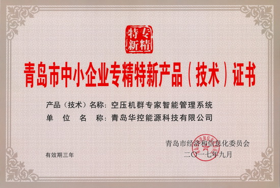 同时,华控能源自行研发的适用于用能企业的空压站节能监控管理系统也顺利通过复审,再次被认定为青岛市专精特新产品。