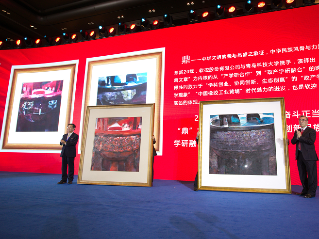 青岛科技大学赠送两幅美术作品庆贺fb体育创立廿周年