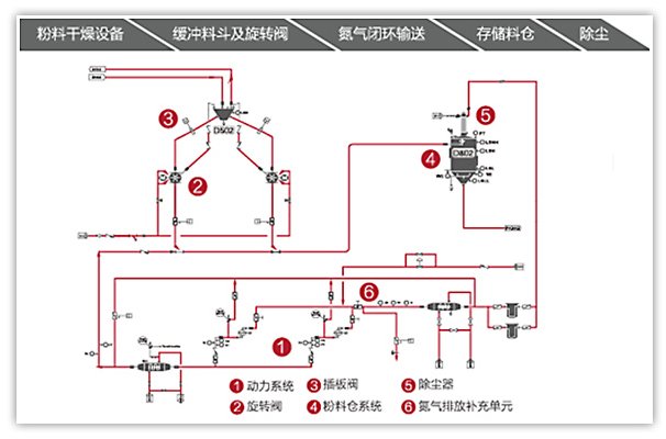 氮气闭环输送,粉料处于密闭微正压状态,防爆等级DIP A22 T4+EXDII BT4;